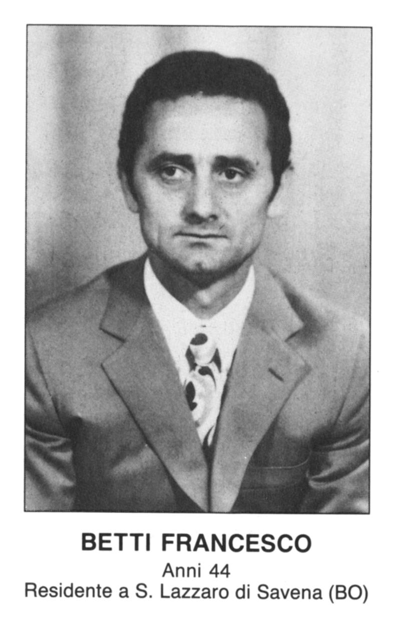 Francesco era un taxista originario di Marzabotto. Viveva con la moglie e il figlioletto a S.Lazzaro di Savena. Il 2 agosto 1980 era in servizio davanti alla stazione di Bologna. Il suo taxi venne distrutto dallo scoppio della bomba.