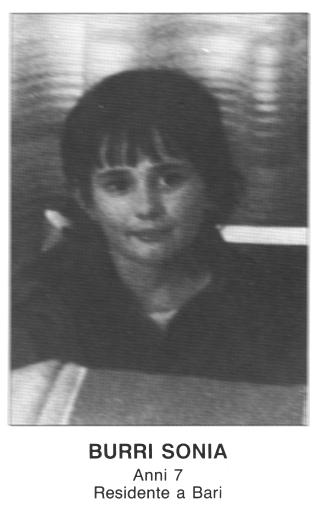 Dopo lo scoppio della bomba viene ritrovata una bambolina rossa. La teneva in braccio Sonia che aspettava con i genitori il treno per Roma. Sonia è una piccola vittima della strage, assieme a Patrizia, sua sorella maggiore.