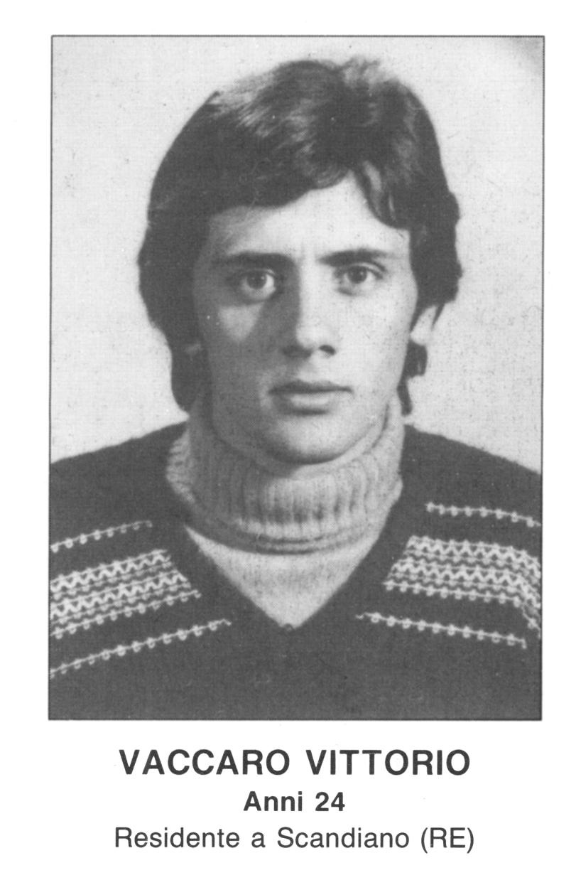 Vittorio Vaccaro si era recato a Bologna assieme alla propria madre ed attendeva in stazione una parente proveniente dalla Sicilia. Vittorio, lavorava alla ceramica Sassol-art di Casalgrande, lascia la moglie Incerti Adele di 22 anni e la figlioletta Linda di 4 anni.